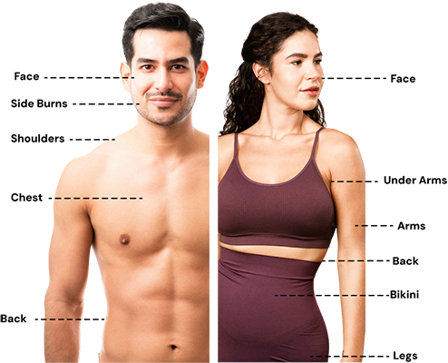 Full body laser hair reduction is a cosmetic procedure that uses laser technology to remove unwanted hair from various areas of the body, including Legs, arms, bikini, underarms & face.